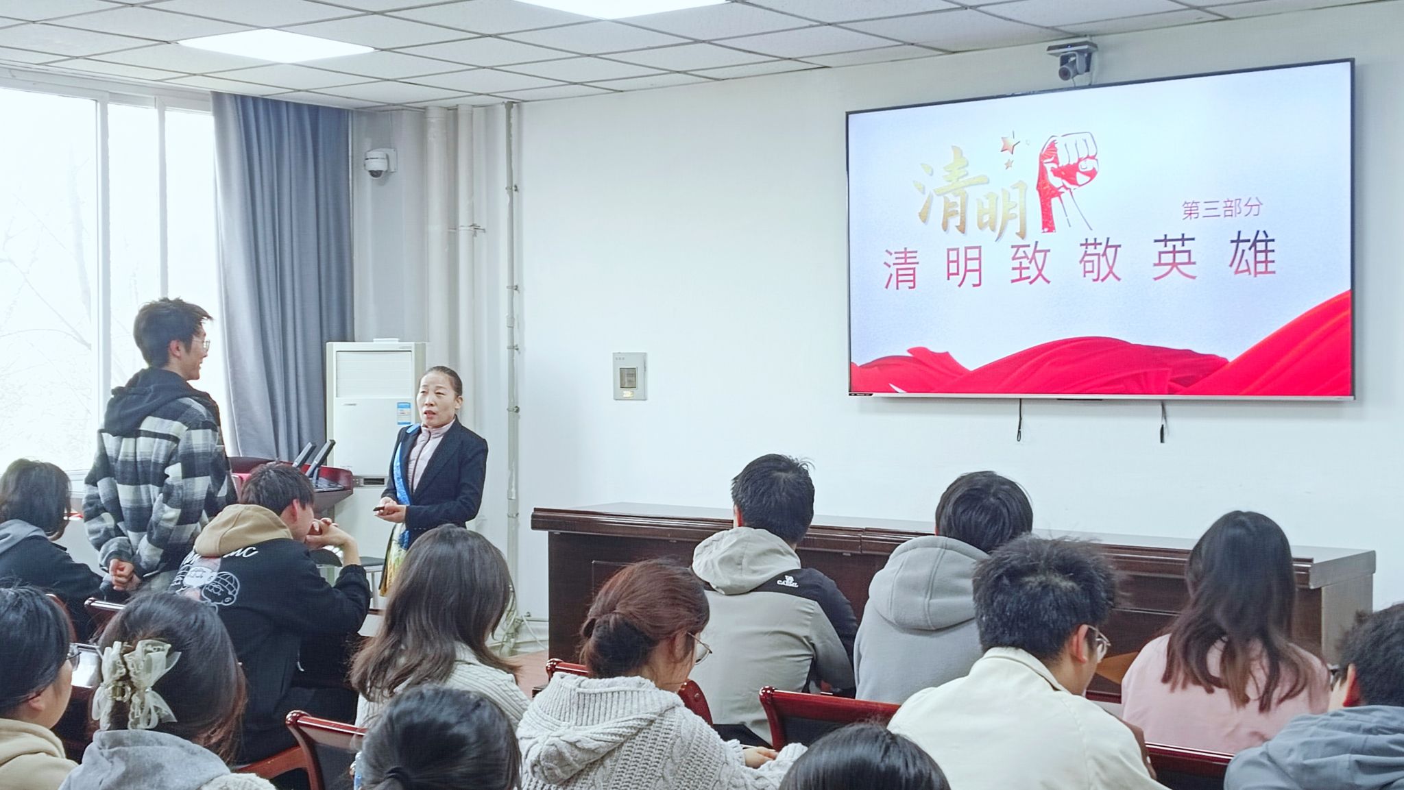 A313会议室开展了“清明致敬英雄”主题教育活动。支部书记张婷通过阐释清明节文化内涵,讲述杨靖宇雪原抗敌、吉鸿昌慷慨就义等英雄事迹,带领学子穿越时空感悟先烈精神,深切领会了清明节追思英雄先贤的意义。