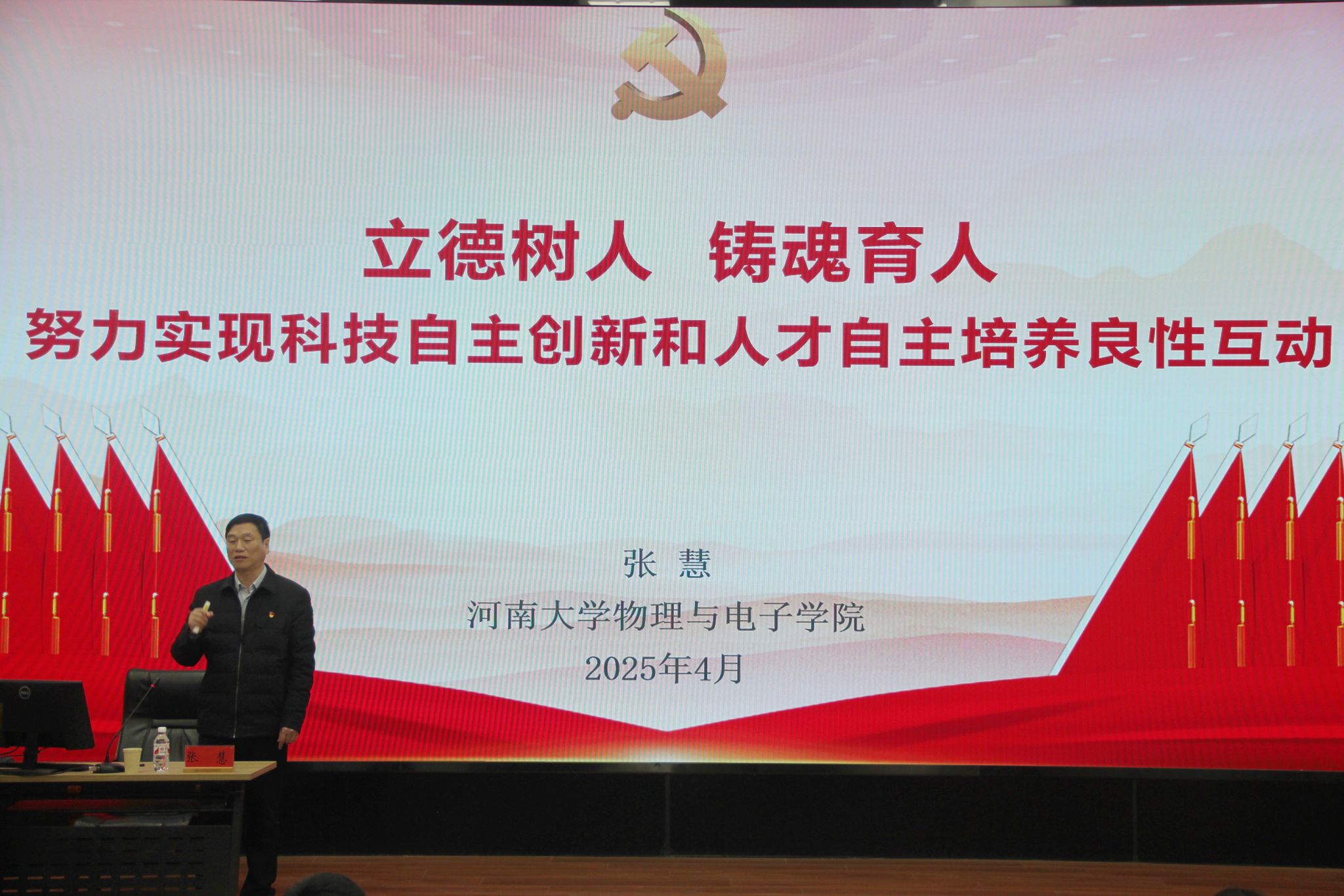 党委书记张慧以《立德树人、铸魂育人,努力实现科技自主创新和人才自主培养良性互动》为题为大家上了一堂内容丰富、精彩生动的思政课。带领大家一起学习了习近平总书记寄语新时代青年的一系列重要讲话精神。并传达学习了全国两会精神和《教育强国建设规划纲要(2024-2025年)》等内容,引导大家弘扬伟大建党精神,锤炼鲜明政治品格。他对广大积极分子提出三点期望,一要坚定理想信念,让勤奋学习成为青春远航的动力。二要彰显青春作为,在中国式现代化建设中挺膺担当。三是不负青春韶华,在奋斗实践中练就过硬本领。