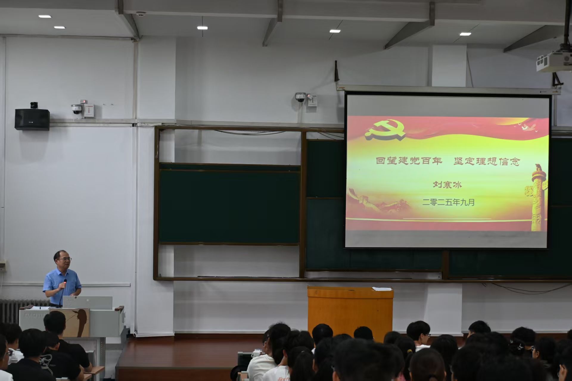 党委副书记刘寒冰以专题党课接续,搭建 “思想成长”与“专业认知”的衔接桥梁。此次党课以回望建党百年辉煌历程为切入点,紧扣新生入学初期思想塑造需求,旨在引导大家在初步掌握专业方向、明晰学习路径的基础上,进一步锚定理想坐标、涵养责任担当,为大学阶段的全面发展筑牢思想根基,实现专业素养与思想觉悟的同频提升。