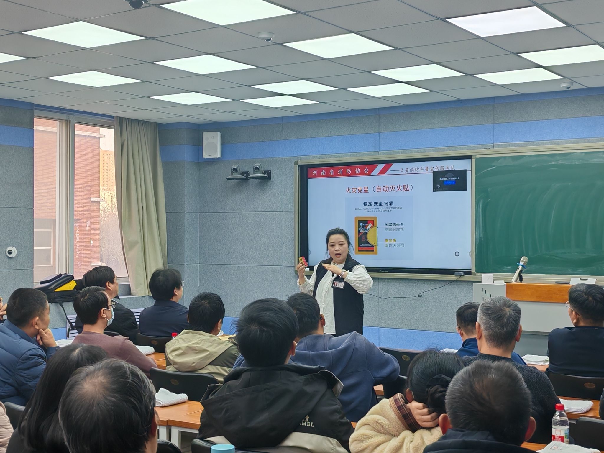 邀请河南省消防协会宣讲教员,举办消防安全知识讲座及消防疏散演练。