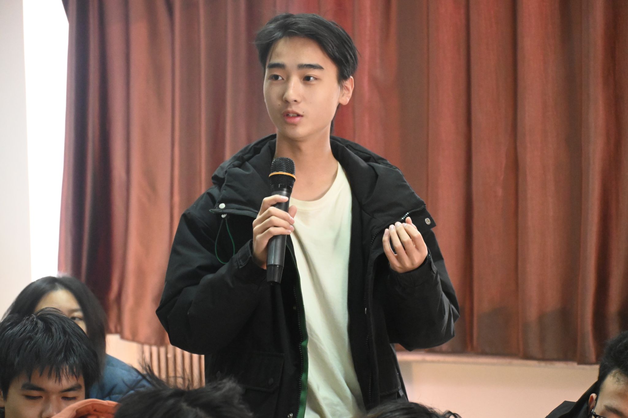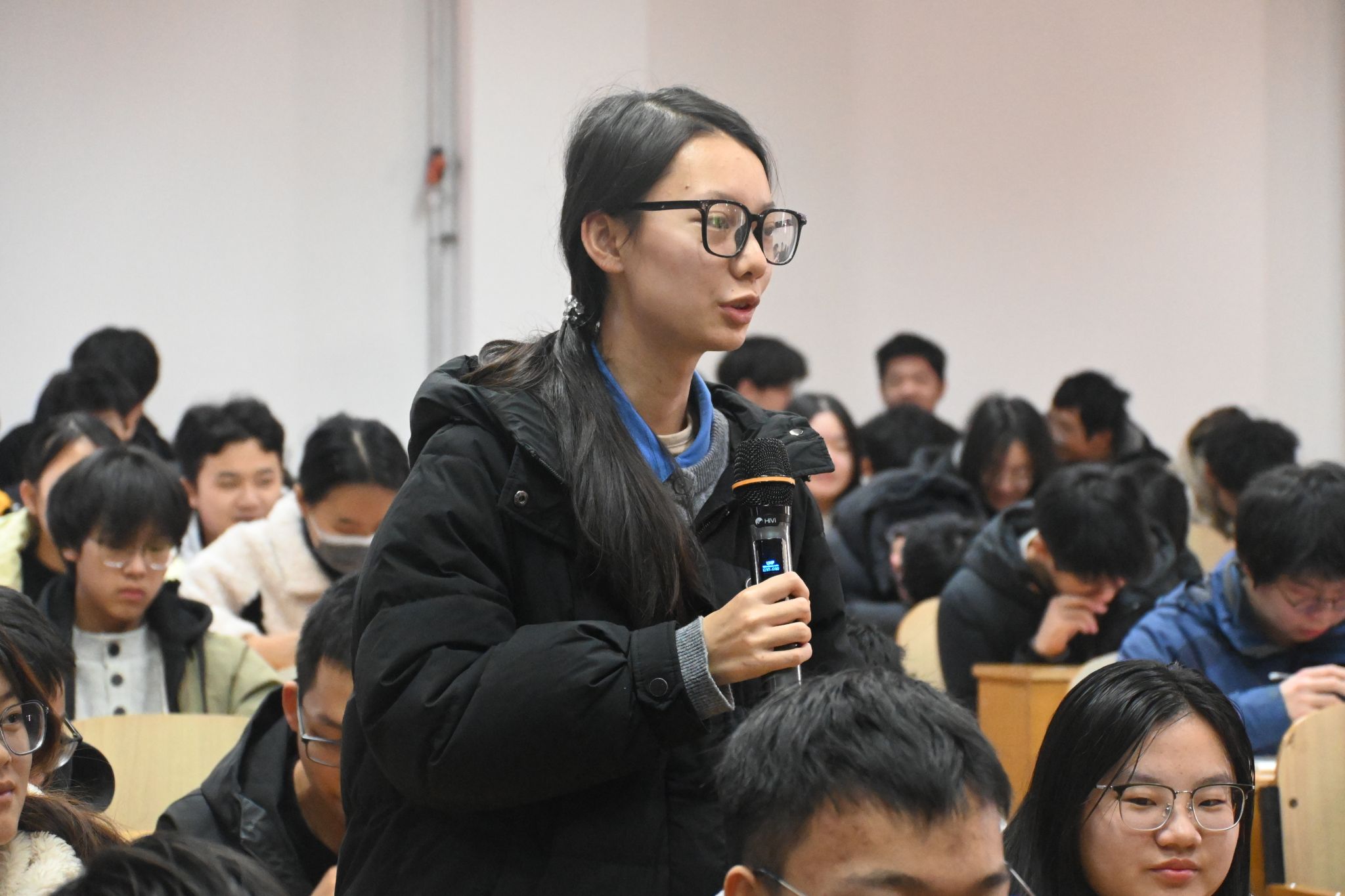 互动答疑环节,新生们围绕复习资料查找、英语听力备考等问题积极提问,学长学姐逐一细致解答。此外,学生代表还主动分享了参与学科竞赛、争取奖学金等经验,建议同学们在大一阶段夯实基础、主动尝试,通过参与适配的学科竞赛积累经验、提升能力。