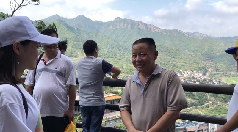 7月15日上午,考察团奔赴此次活动第二站—青年洞。首先,队员们针对红旗渠精神向一些游客进行了随机调查,同学们从每位游客饱含深情的解答中感受到了满满的民族自豪感以及对红旗渠精神“自力更生,艰苦奋斗”强烈的认同感。随后,在纪念红旗渠总设计师、林州老书记杨贵同志处,亲耳聆听了两位曾参与过红旗渠开凿过程的老爷爷热情的向我们讲述开凿红旗渠时的艰辛危险,并将自己为纪念杨贵同志去世而写的诗一字一句读给我们听。他们对红旗渠真挚的感情让我们感受到了红旗渠精神散发的光辉。观察团成员在青年洞前面对党旗重温了入党誓词。