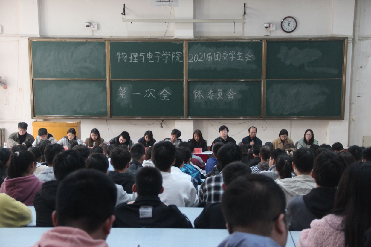 在金明校区综合楼1203教室召开以“构建团结协作学生会”为主题的2021届团委学生会第一次全体委员会。出席会议的有党委副书记刘寒冰、团委副书记姚星宇、学生会全体成员。