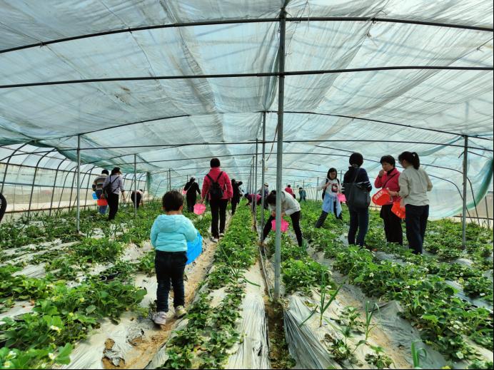 3月10日下午14:00,在院党委书记王宏华带领下,满载全院女教工的大巴车在欢声笑语中抵达目的地。女教工们迅速与大自然融为一体,在田野里尽情感受初春的清新。可爱的女神们个个开心得像个孩子,她们戴着小帽子、挎着小篮子、拿着小铲子,有的挖荠菜、有的摘草莓、有的放风筝,互相打趣、耍闹,并在果香四溢的草莓棚内拍照留,处处洋溢着轻松和谐的氛围。经过一个多小时的采摘后,每个人都有了丰硕的成果。