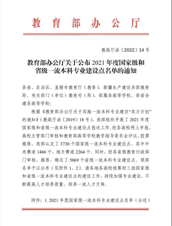 近日,教育部办公厅发布了《关于公布2021年度国家级和省级一流本科专业建设点名单的通知》(教高厅函〔2022〕14号),成人性爱影片