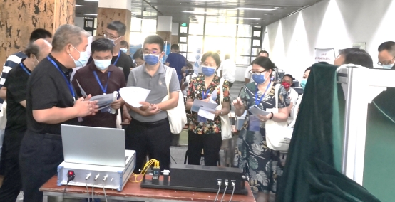 (刘平安老师在给评委们讲解仪器的设计思路和方法)