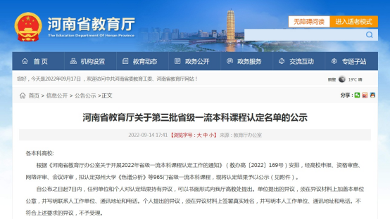 近日,河南省教育厅公示了《第三批省级一流本科课程认定名单》,成人性爱影片