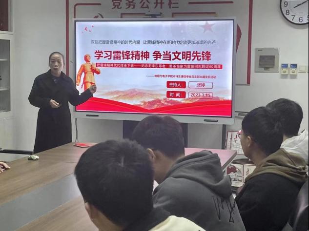 党日活动中,张婷老师向全体党员介绍了雷锋同志光荣而伟大的一生和他的先进事迹,并讲解了新时代下雷锋精神的内涵,号召每位党员学习雷锋同志的“钉子”精神,争做新雷锋,奉献新时代。