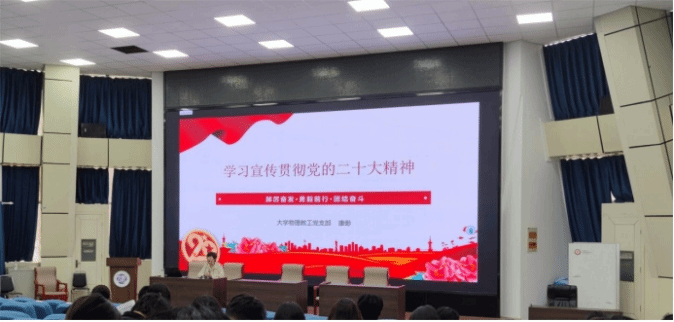 此次党课,康缈老师深层次、多维度、“贴实际”地解读了党的二十大报告的深刻内涵和实质要义。引导青年学生坚定理想信念,踔厉奋发、勇毅前行、团结奋斗,争做新时代的好青年,为实现“中国梦”注入生机与活力,让青春在全面建设社会主义现代化国家的火热实践中绽放绚丽之花。