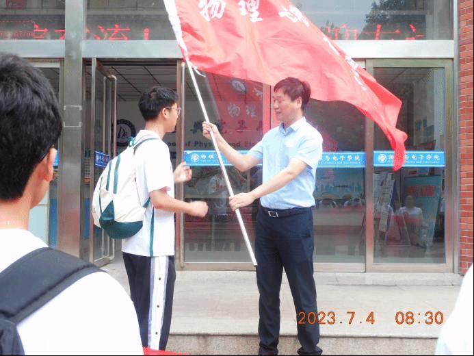 党委书记张慧、党委副书记刘寒冰、辅导员张婷等出席本次出征仪式,出征仪式由党委副书记刘寒冰主持。