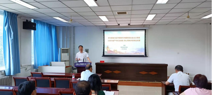 全体教职工党员作《认真学习党章争做时代新人》专题党课。他从党章概述等方面详细介绍了党章的重要意义以及党的二十大党章具体修改的内容。随后,他带领大家一起回首革命前辈的光辉历程,勉励大家勇挑重担、堪当大任,胸怀世界、展现担当。做社会主义核心价值观的坚定信仰者、积极传播者、模范践行者,向英雄学习、向前辈学习、向榜样学习,立志成为大先生,在教书育人和科研创新上不断创造新业绩,在实现中华民族伟大复兴的时代洪流中踔厉奋发、勇毅前进。