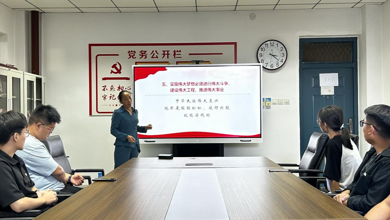 支部书记张婷从5个方面阐述“中国梦”与“实干才能梦想成真”内容。充分展示了中华民族在追求梦想道路上的艰难曲折,感悟了中国共产党义无反顾肩负起实现中华民族伟大复兴的历史使命,深入阐述了中国梦的本质与内涵,了解了中国梦与世界各国人民的美好梦想相通,强调了在中国梦的实现的过程中,也必须进行伟大斗争,建设伟大工程、推进伟大事业,发扬实干精神方可成功。