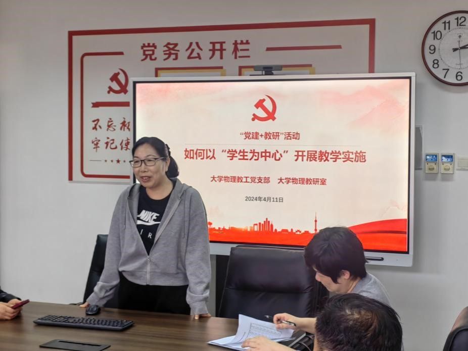 教工党支部组织全体党员教师开展主题为“如何以‘学生为中心’组织教学实施”的党建+教研活动。支部书记康缈主持活动。