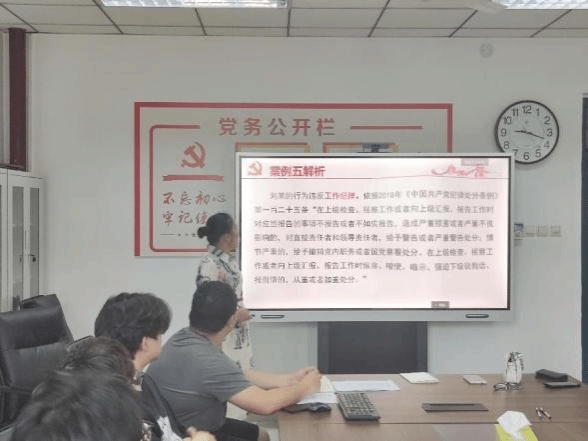 A座309会议室召开了“学习新条例,展现新作为”主题党日活动,活动由党支部书记张婷主持。