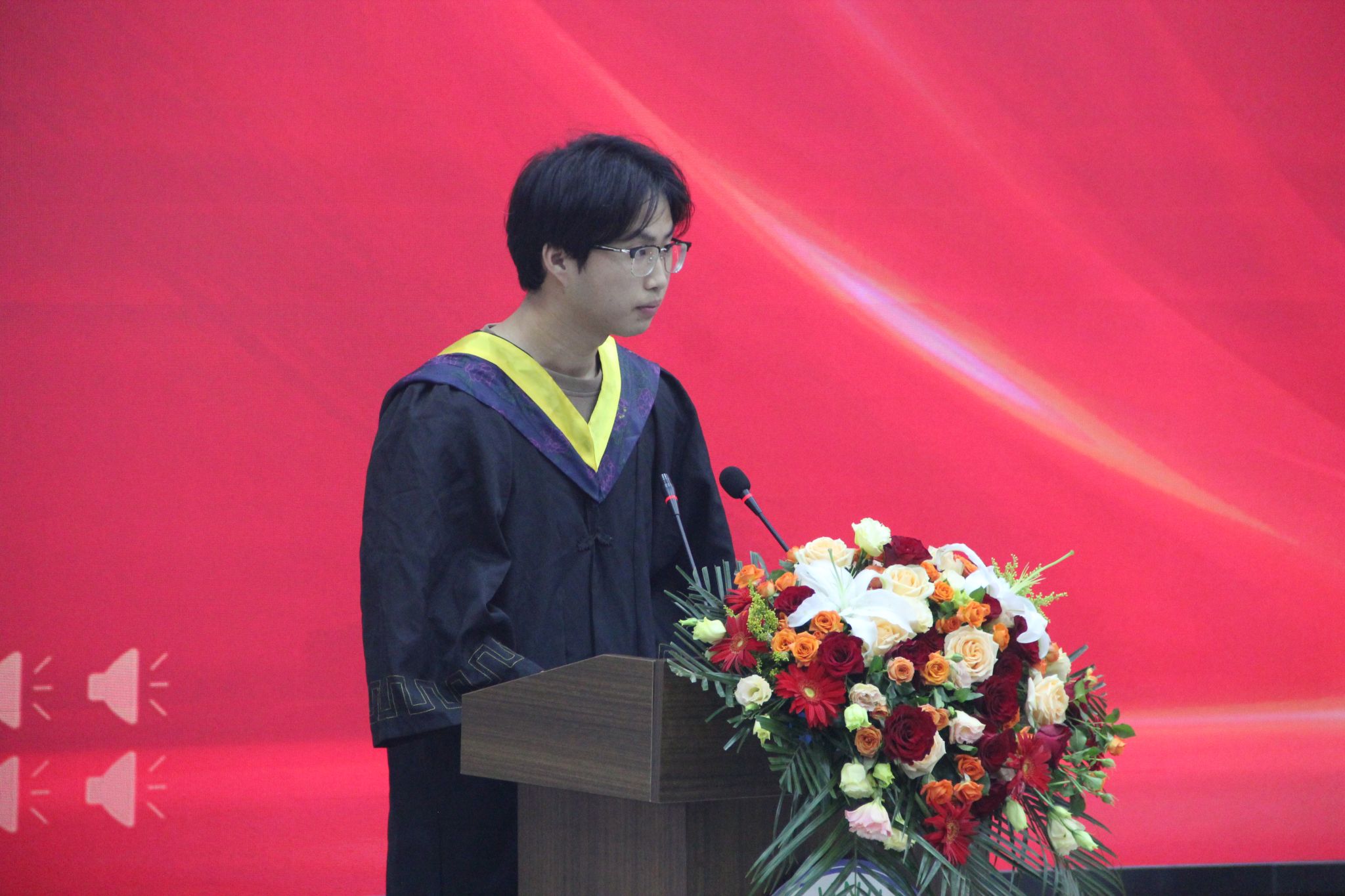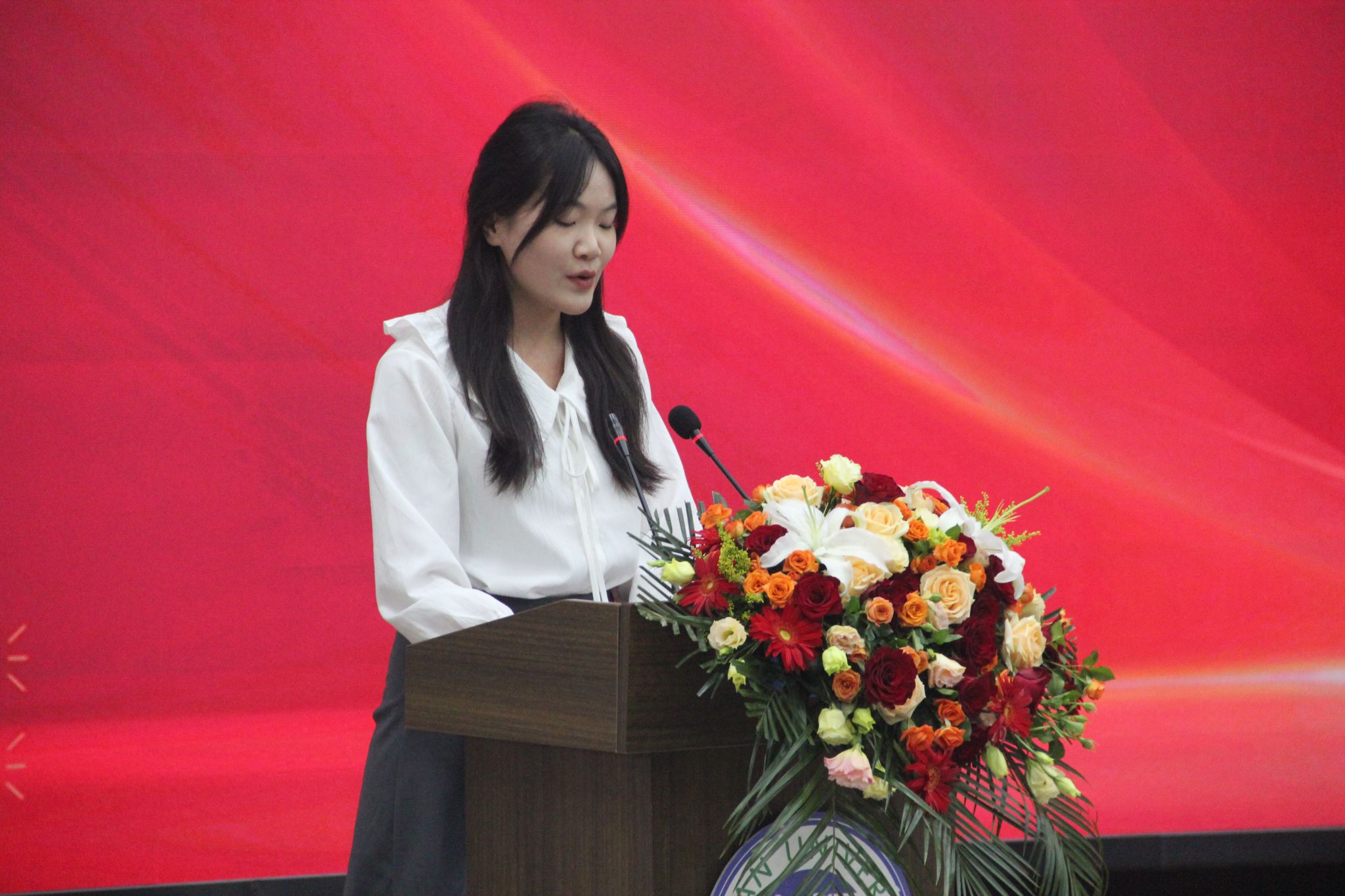 学专业陶靖文同学作为在校生代表发言。她代表全体在校本科生真诚感谢学长学姐们的热情帮助和无私奉献,并祝愿他们能在未来的道路上越走越远,追求更高的目标,实现自己的梦想。
