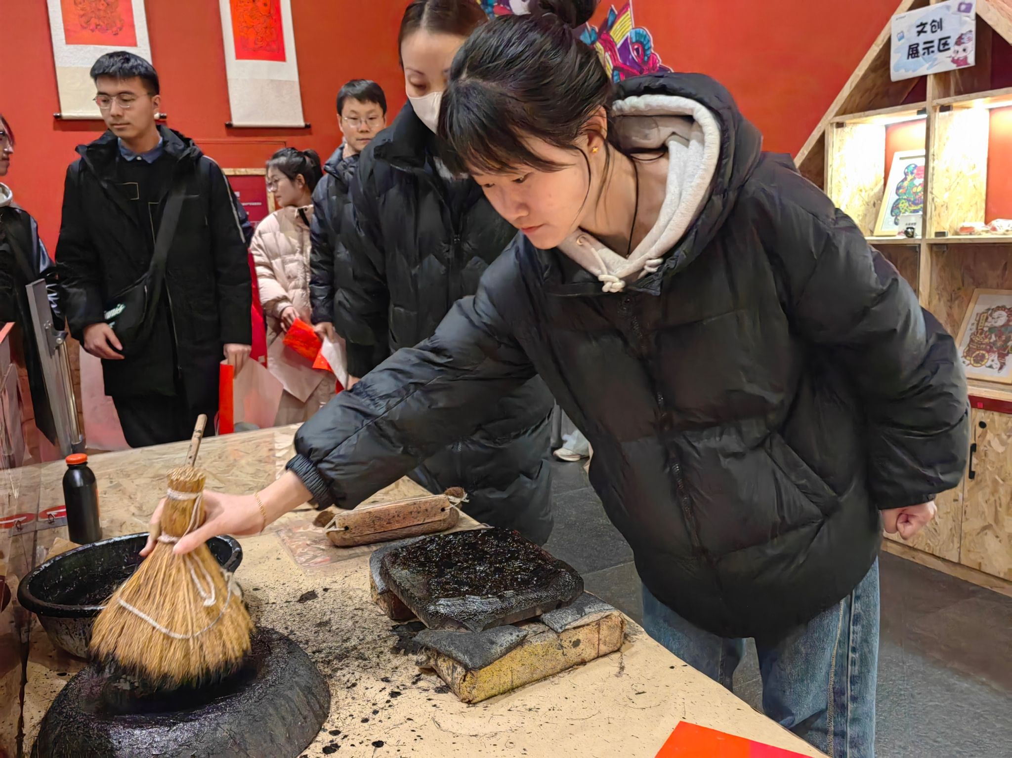 图3 学生党员体验木版年画印制
