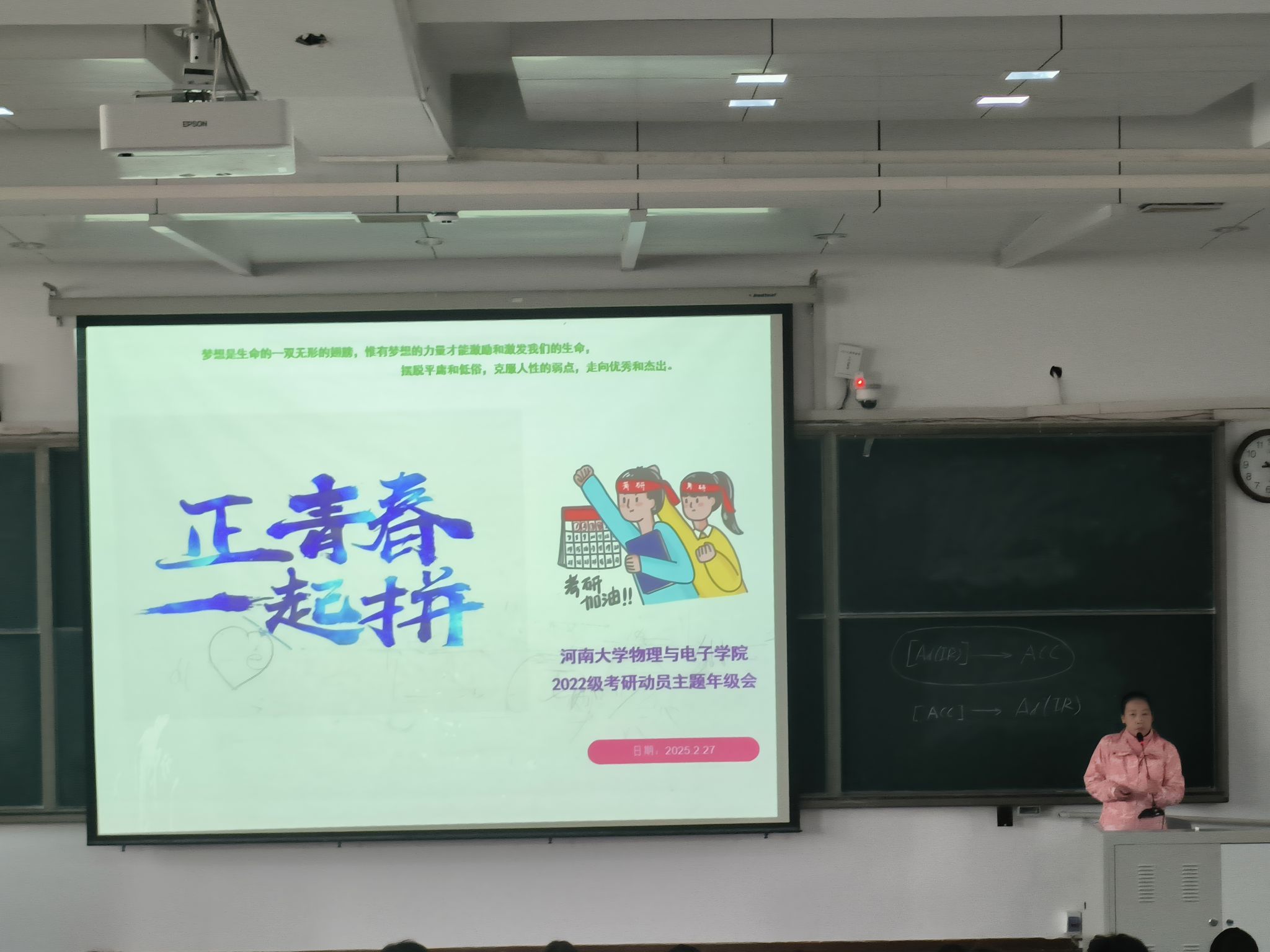 2022级在综合楼2306教室召开以“正青春,一起拼”为主题考研动员会。辅导员张婷老师主持会议。