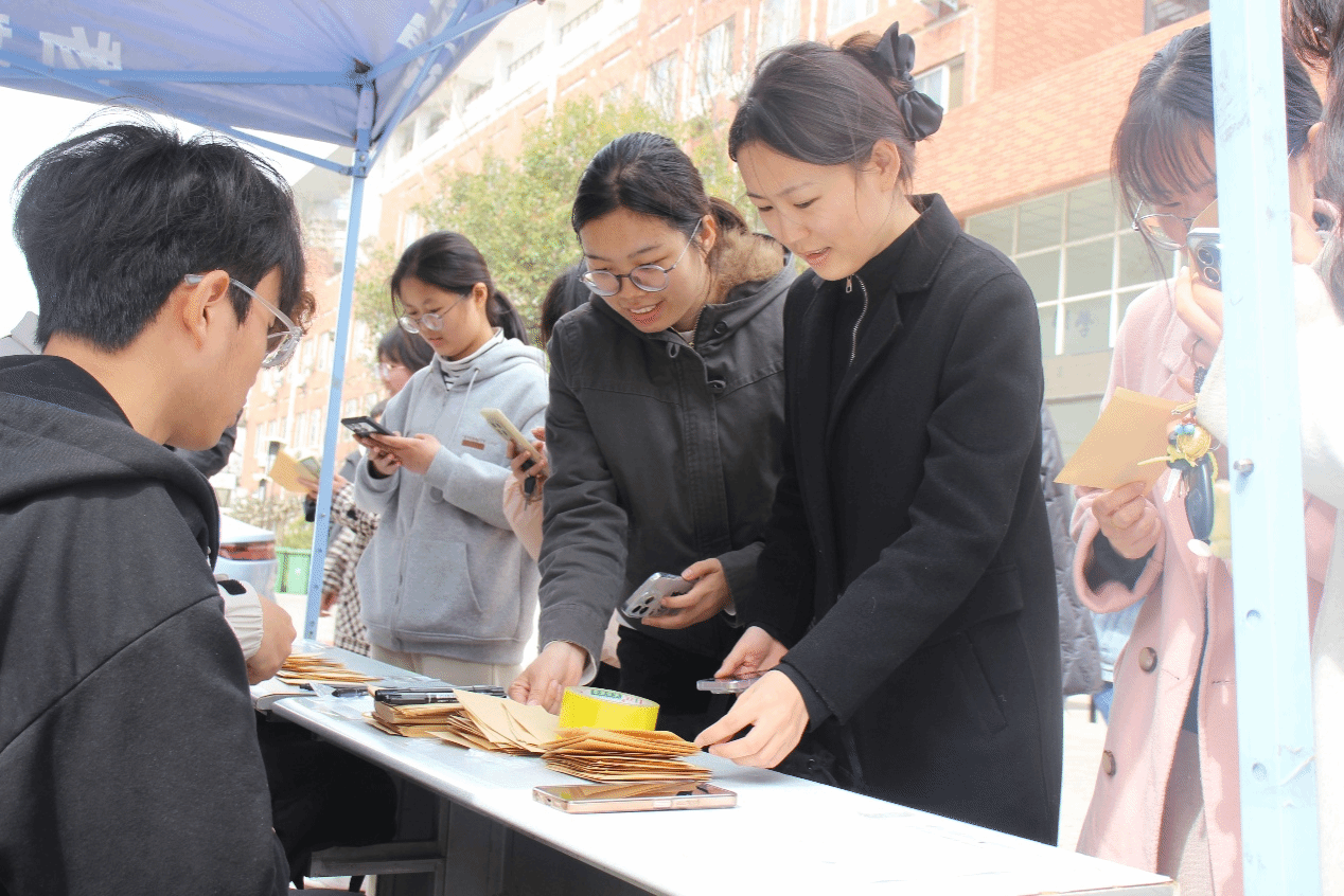A座楼下开展了赠送种子盲盒活动。师生们踊跃参与,扫码、抽种、领盆,流程顺畅有序。活动现场气氛热烈,盲盒迅速分发完毕。这份“绿色惊喜”不仅让大家感受到播种希望的乐趣,也激发了大家对环保的关注与热情。